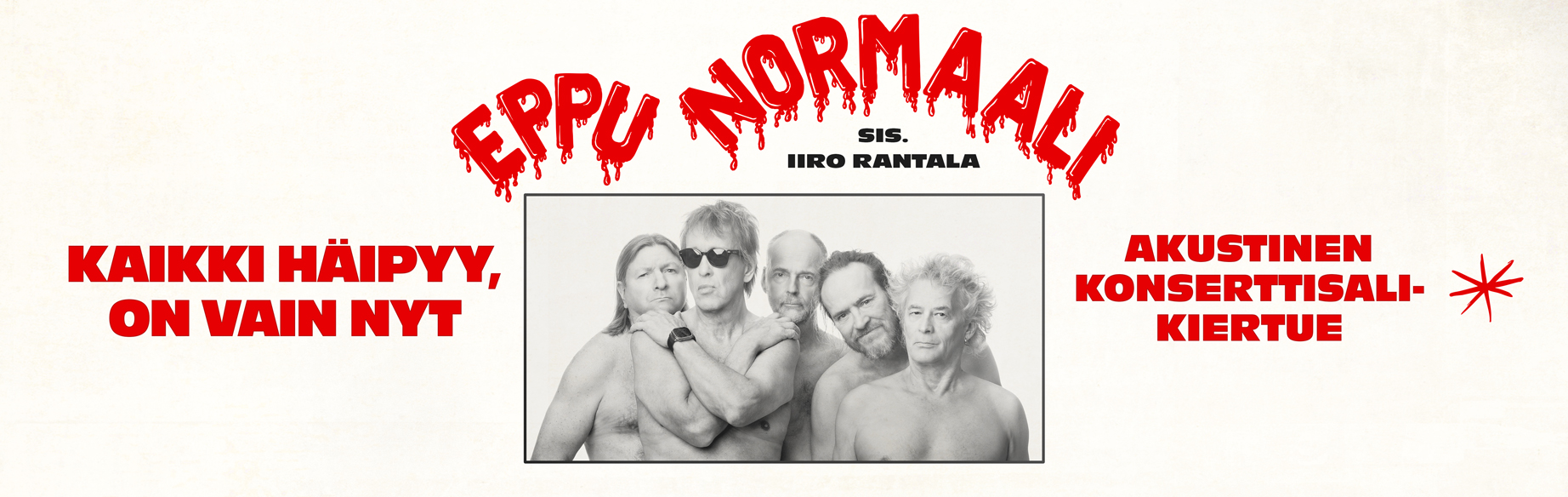 Alkuvuoden osuus ”Kaikki häipyy on vain nyt”- keikoista on viimeinen mahdollisuus nähdä ja kuulla Eppu Normaali akustisena konserttisaleissa.